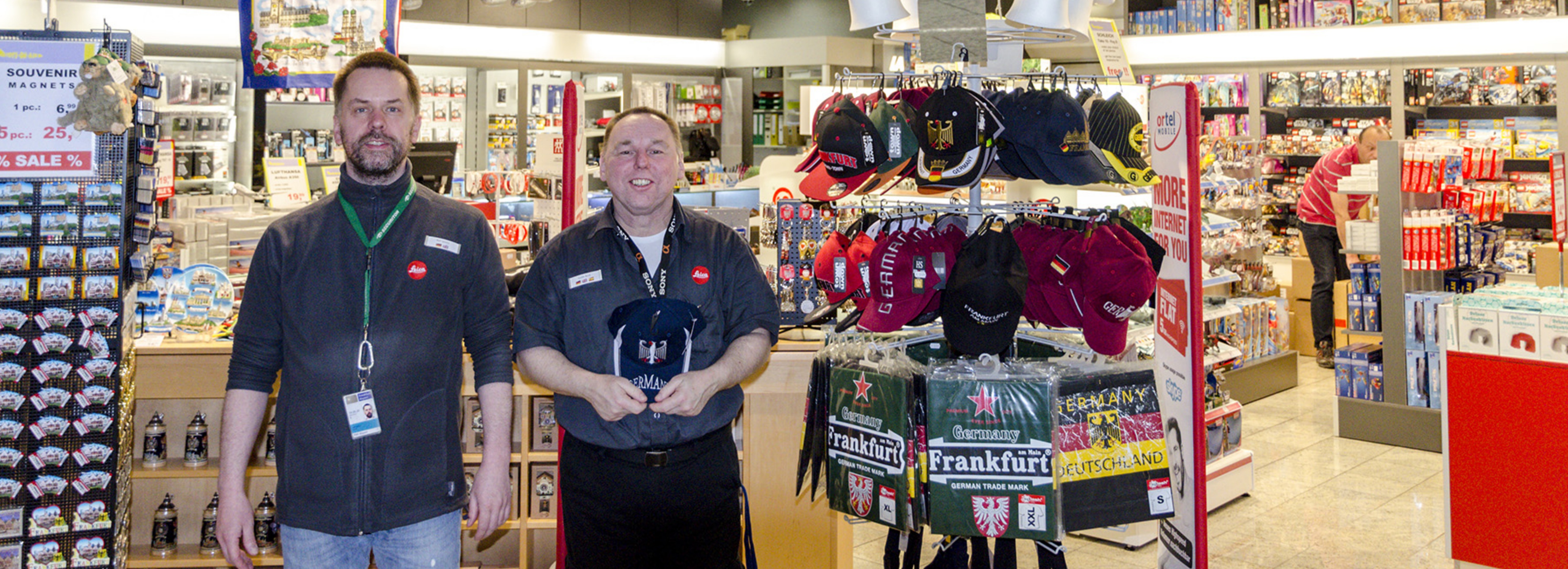 Entdecke eine große Auswahl an Souvenirs, Spielzeugen, Elektronik- und Pflegeprodukten in unseren sechs Geschäften auf der Luftseite: